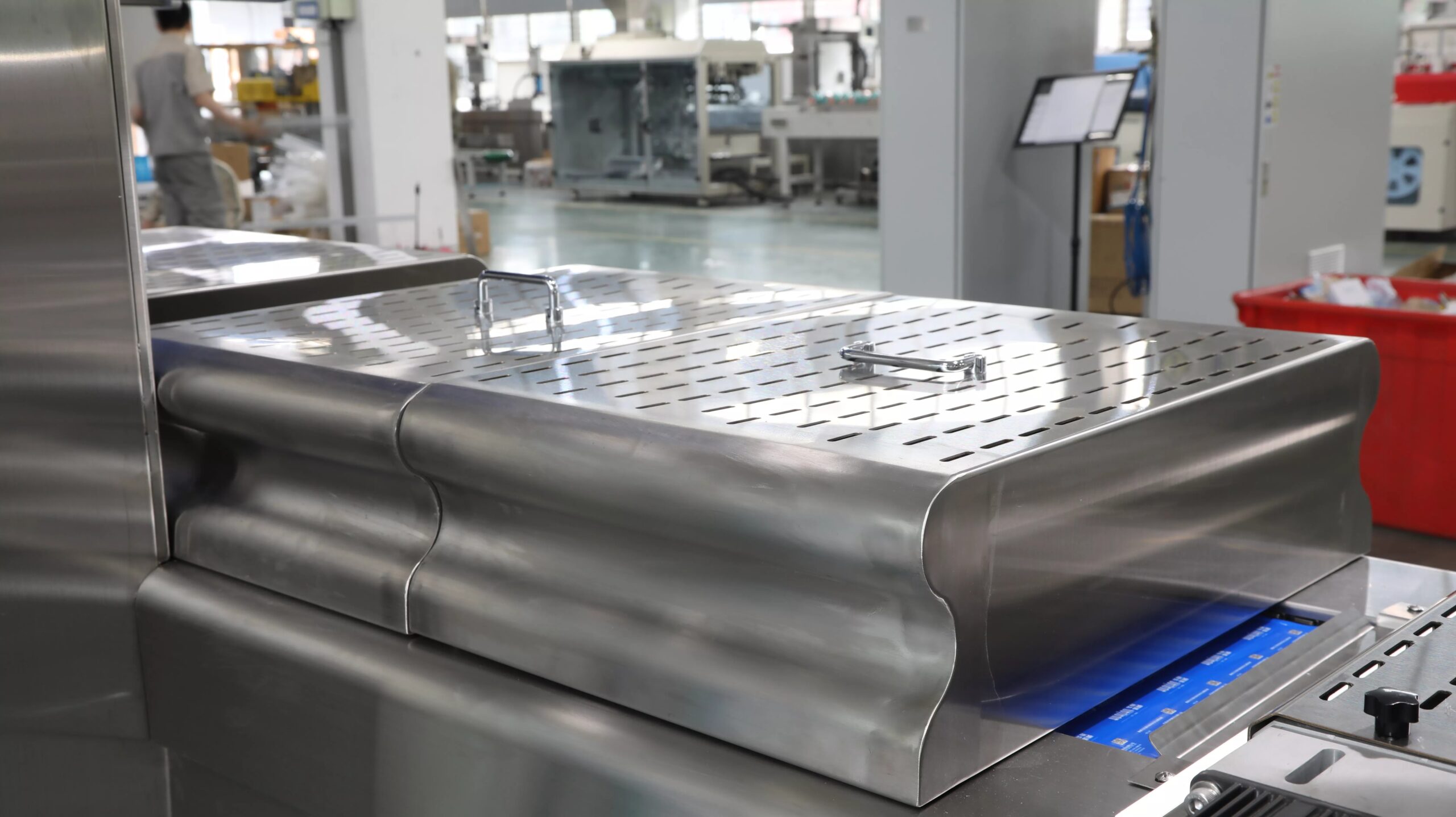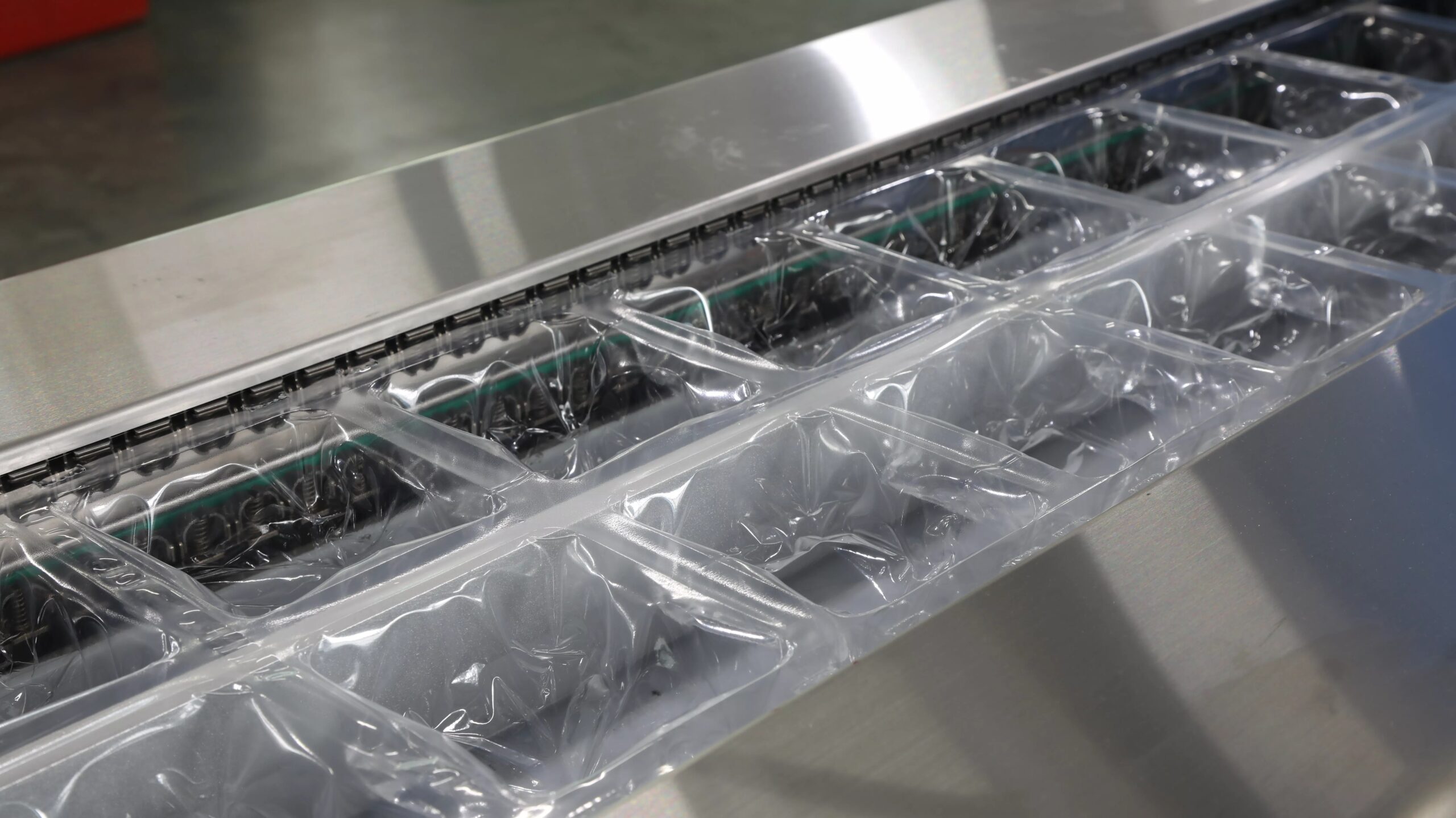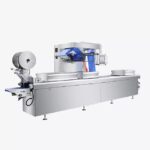 - This vacuum thermoforming packaging machine is widely used to skin pack the products like kinds of cheese, snacks, sausage, meat, medical products, hardware, medical equipment, etc.